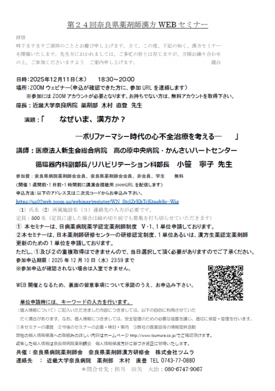 第24回奈良県薬剤師漢方WEBセミナー