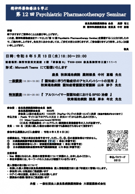 第12回Psychiatric Pharmacotherapy Seminar
